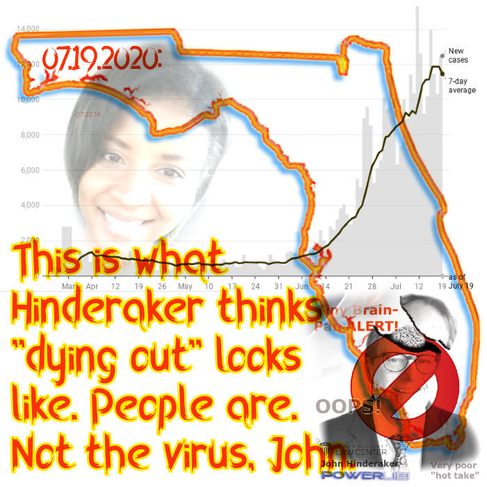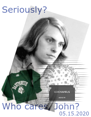 But all of this — for John — is offered solely to reduce his own personal cognitive dissonance (because, as depicted at left, he needed a haircut!?). In all likelihood, by this time next month… 200,000 or more Americans will be dead of COVID-19. You know, the virus John glibly told us in March might kill fewer than 40,000. He was wrong by a factor of… five-fold.