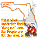 By mid-July, he was sayingthe deaths in the US were mostly… over“. Obviously wrong, the very moment he wrote it — as deaths were accelerating wildly, by then in Texas, Florida and Georgia.