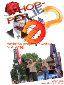 UPDATED @ 10 PM EDT — 08.22.2020: It seems the MAGA-ats cannot draw much of a crowd, even if Hinderaker tries to get the word out, in little old Hugo, Minnesota.