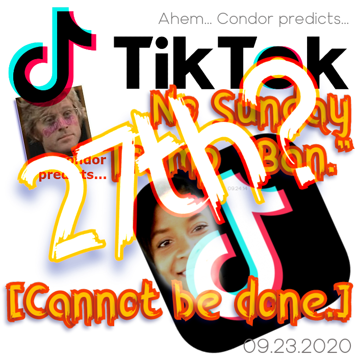 So. . . Trump today purported to re-assert a September 27 potential “banning” date, for TikTok overall (but not WeChat), if his demands aren’t met (whatever those might be!).