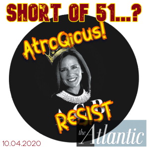 Even if we assume that no one else on the GOP side of the Senate falls ill to the COVID-19 super-spreader events of the last two weeks… it seems the Trump team is about two votes short. [I part company — in small measure at least — with The Atlantic, in as much as I expect Mitt Romney will vote thumbs down, if it comes down to his vote being the 51st.]