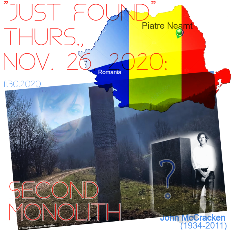 The Romanian version looks to be not as polished / finely-finished as the first — so it is possible that it is a copycat, and not (what most people now surmise was) a McCracken, south of Moab, Utah. [The Romanian version is also a little bit taller, at 13 feet — with the seams more easily visible, as well — and circular buffing patters left in the metal throughout.]