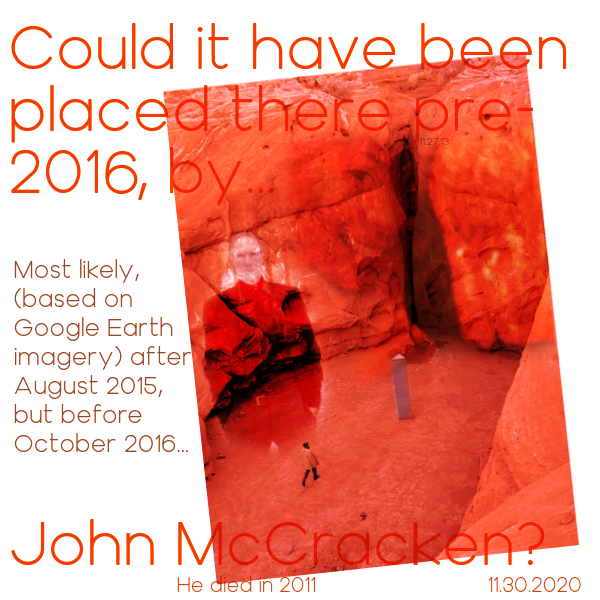 For those familiar with McCracken’s art, it’s strikingly obvious why the deceased artist has become a focal point of the monolith mystery: Throughout his career, McCracken produced a variety of steel sculptures that look nearly identical to the monolith placed in Utah. His work is predominantly composed of free-standing, metallic and triangular structures. Besides the striking resemblance between McCracken’s art and the monolith, reports from his son, Patrick McCracken, make it plausible that John McCracken is the man behind the monolith….