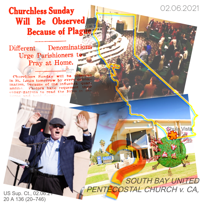[The new “pro-organized-religion” wing of Gorsuch and Barrett did very little to impress upon us that they will just rule on the law as it has been understood for over a century — rather than “speechifying” about matters not properly before them. But I suppose that is harmless dicta.] And… as my image at right suggests, during the pandemic of 1918, closing churches was considered a patriotic life saving duty, almost without exception. But among today’s “greivance / mega-churchers”? Not so much.