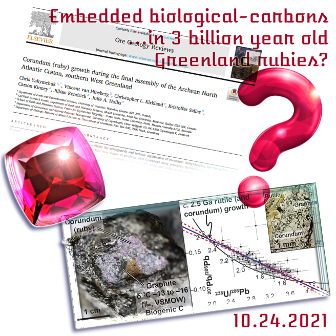 This paper would seem to put the debate largely to rest. This carbon finding, assuming that there are no subsequent problems with the dating of the ruby ore itself, is pretty good evidence of life — more than 2.5 billion years in the past, in what became Greenland. Here is a popular magazine’s take on it all: