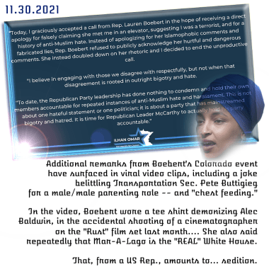 [U — Tangerine Drops… The Usual BS] Minn. Rep. Omar Graciously Follows Up — And Rightly Calls Colorado’s Boebert Out, As A Pattern Islamaphobe / Racist