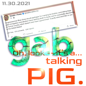 Updated, after 9 PM EST — Tangerine, the talking pig, weighed in. He suggested that Rep. Omar hates America. Gosh. How original. The talking pig’s remarks are imaged at left — for posterity.