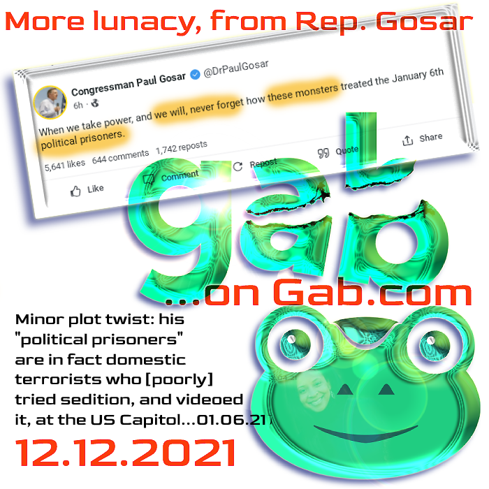 We note it (at right, again from the social network of choice for racists and secessionists!) primarily for the record, as he will be seen — by the longer lens of history — as no different, in substance than the southern white Congressmen who committed sedition, on their way to creating the Confederate States, to keep slavery.