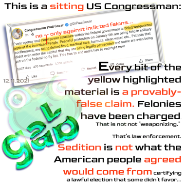 Or, perhaps more likely — he knows better, but is simply evil — and an insurrectionist himself, at heart. He swore an oath to uphold the Constitution, when he entered Congress… he had defiled that oath. He should be removed from his seat, lawfully.
