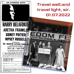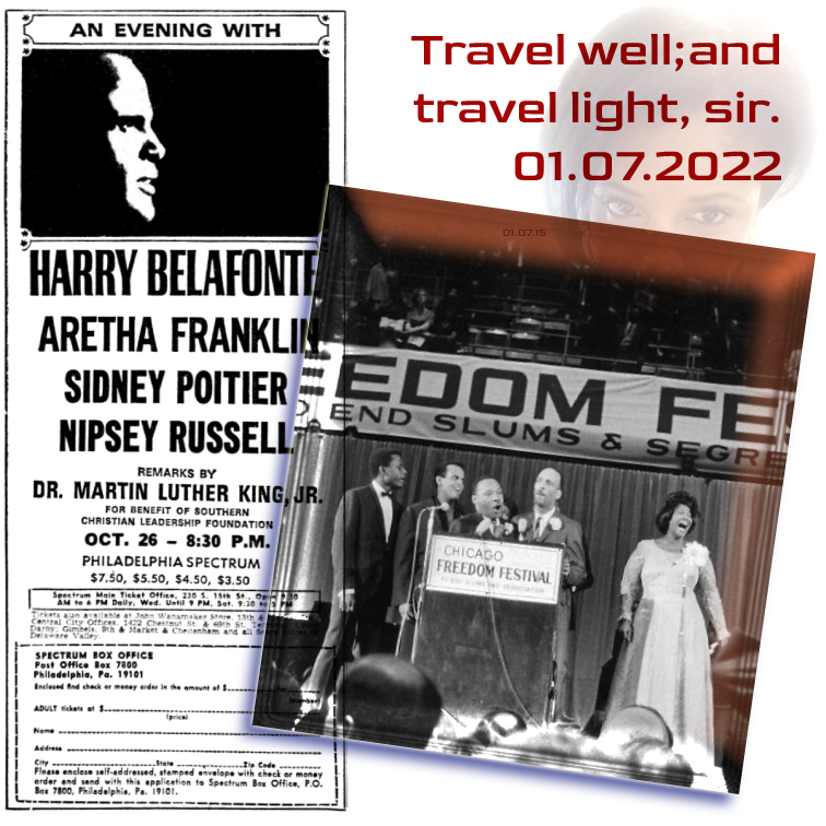 He marched with Dr. King. He was a face that most African Americans (and young men, especially) could see as “like them” — in a mass-media landscape then bereft of strong, successful black men. Succeeding, on the silver screen — and living his values, in real life. He was a very fine man. [Don’t buy the nonsense of the far right — trying to tear him down, as they tried with Dr. King, and more recently with Desmond Tutu.]