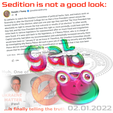 So… here about 390 days after Tangerine exhorted his troops to “fight like hell”, and five days after he said that Pence should — and could — have “overturned” (his word, not mine!) the election… Paul M. has decided to say that’s not cricket… (in the faintest of terms).