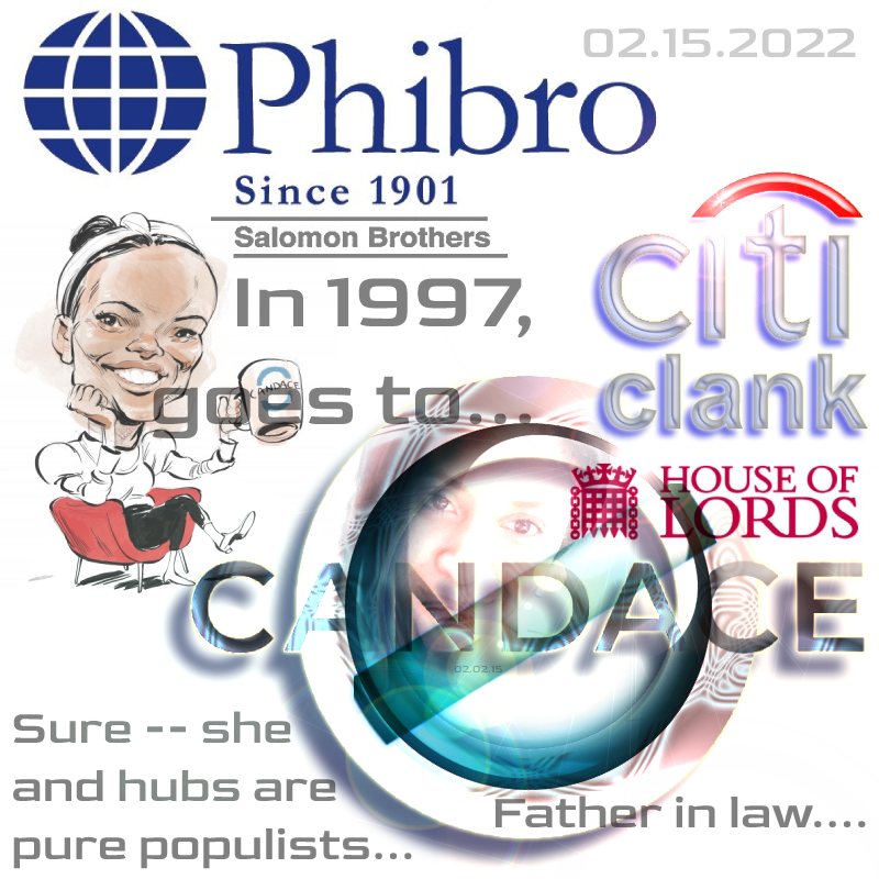 All the real economic power in her relationship is almost certainly banking in London, with a mega-bank — likely an affiliate of old Phibro-Salomon, the metals trading firm her pops-in-law worked at, before founding his own brand — and retiring as the fabulously-wealthy Baron Farmer, to serve in the House of… LORDS. [The parent entity of that successor entity is now owned by Citibank’s BHC — Citigroup.]