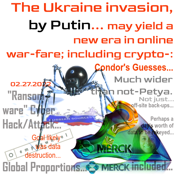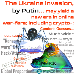 As we write this, EU leaders are closing Western European airspace to Russian airlines, the SWIFT network is locking out certain state connected Russian banks, there are moves to track Bitcoin, to be sure Russian state affiliated actors cannot use it to launder money, and evade sanctions. . . and there is talk of a widening war against Ukraine infrastructure by Putin’s cyber-espionage teams.