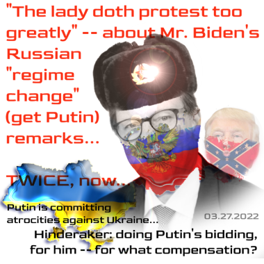 Hinderaker again claims to be offering thoughtful perspectives — in an academic fashion, here offering up his latest pro-Putin sound bites, and disparaging his own US Commander In Chief.