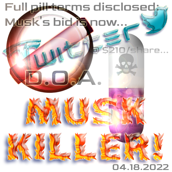 Full Rights Plan — Or “Pill” — Terms Disclosed, By Twitter At SEC EDGAR Window, Just Now… Game Over, For Musk.