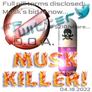 The small inaccuracy is that this professor is unaware that the latest pills provide for a delayed, longer-acting “poison” (called a “Flip-Over”), if/when the unwelcome bidder runs a tender offer. When the unwelcome bidder shows up with all the shares he’s bought, the pill contains a feature that grants huge cash dividends on those shares that were NOT tendered, so NOT payable to the people from whom Elon bought, BUT OUT OF THE BIDDER’S (Elon’s) coffers, not the target’s. In the Twitter case, it would pay the people who’d not tendered $420 per share in cash, from Musk’s own pocket. That is beyond his reach by a great distance, if he needs 50% of the shares… he’d owe about $950 billion. His net worth is around $320 billion. No way, meet no how.