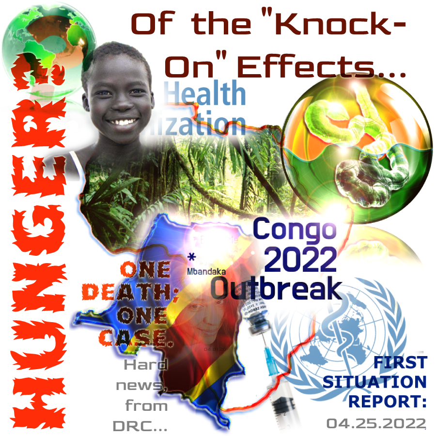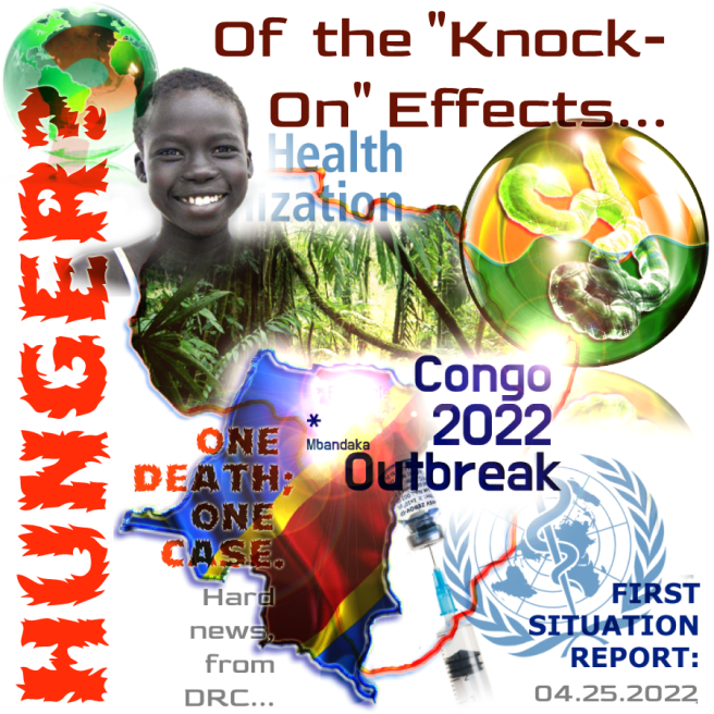 That is to say, while it may seem that the direct effects of what may turn out to only be a handful of deaths in Equater Province is manageable, and to some extent, already planned for… here in the fourth decade — the strain this puts on an already overwhelmed public health effort more widely, becomes most apparent in the plight of the most vulnerable there, after a course of months, should the outbreak linger at all. These “knock on” hunger outbreaks tend to be proportionately most deeply suffered by women and girls. Here’s the latest, overnight from ReliefWeb: