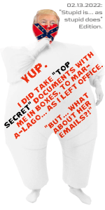 Gosh, he is really out of anything relevant… to contribute… ever since Tangerine carted all those top secret documents down to Mar a lago. [That’s now become a DoJ matter BTW. Priceless!]