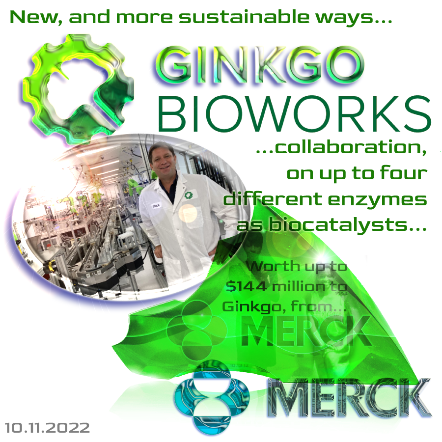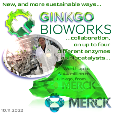 It is a solid move, by a long term player. And this announcement confirms that. This is also good news for Merck, finding more environmentally friendly ways of getting from raw materials, to finished drugs and therapies. The roster of Ginko’s existing collaborations reads like a who’s who of 21st Century pharma (as the first paragraph of the pull quote indicates):
