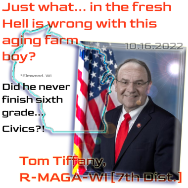 That too, Tommy boy — is the solicitation of a naked bribe. Nothing like what you are whining about, now. Nah — I’ve changed my mind: let’s name this MAGAt idiot, in full: this is one Tom Tiffany, R/MAGA, out of northwestern Wisconsin’s deep frothy right/red 7th District.