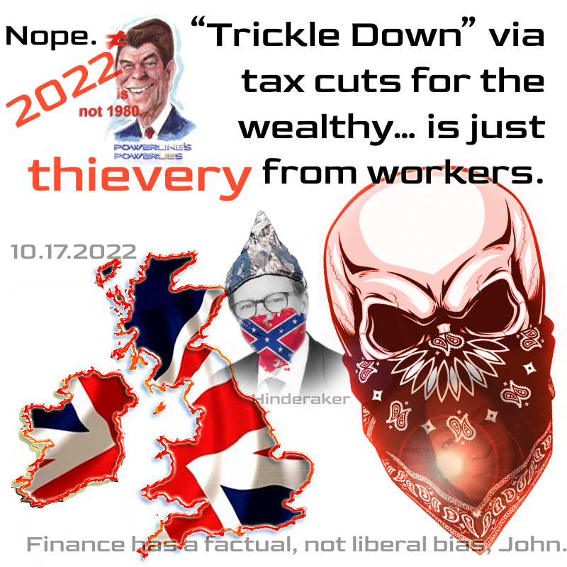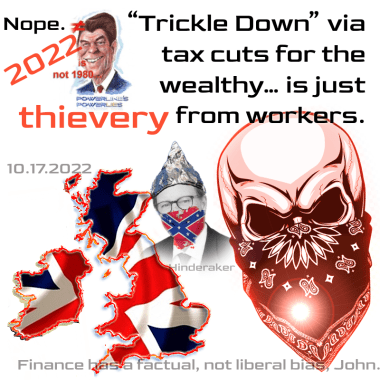 In any event, in John’s telling, it was liberal financiers who conspired to wreak havoc on Truss’s tax cut / trickle down economics.
