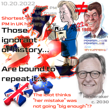 Yet, and still — malevolent people like Hinderaker (and more importantly, Truss) continued to tell that “Saint Ronnievoo doo econ lie to themselves for four more decades… and in truth, no one serious about the science of economics even listened, any more — because it was like hearing how great those old buggy whips used to work, in the era of the hansom cab (1890s).