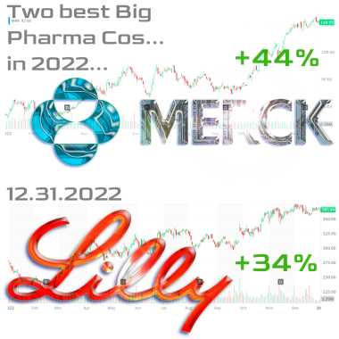 …Merck shareholders have much to celebrate as the company is the best performing large US pharma of 2022 with a return of ~44% this year….