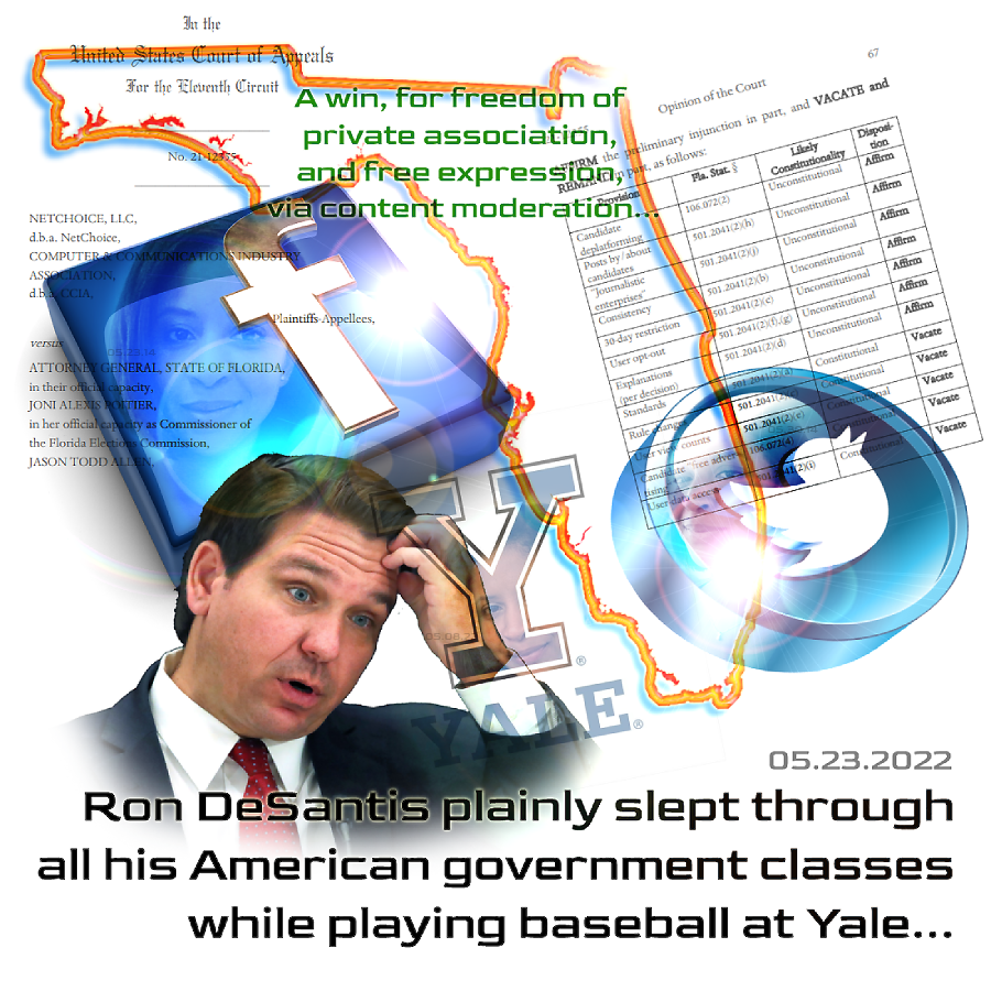 But the malevolent chuckleheads in Texas and Florida press onward, because they are just sore, and mystified, that the GOP got trounced in both 2020 and 2022. So, we will provide links to two of the latest SCOTUS briefs, on topic — as argument day approaches, at the high court — and we will then re-post our original thoughts, below the line.