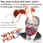 Not much else might explain his ludicrous belief that he will ultimately be forced “by Democrats” to eat bugs… and whatever this “Beyond Meat” clone might be (and at a nose-bleed price point, to boot!).