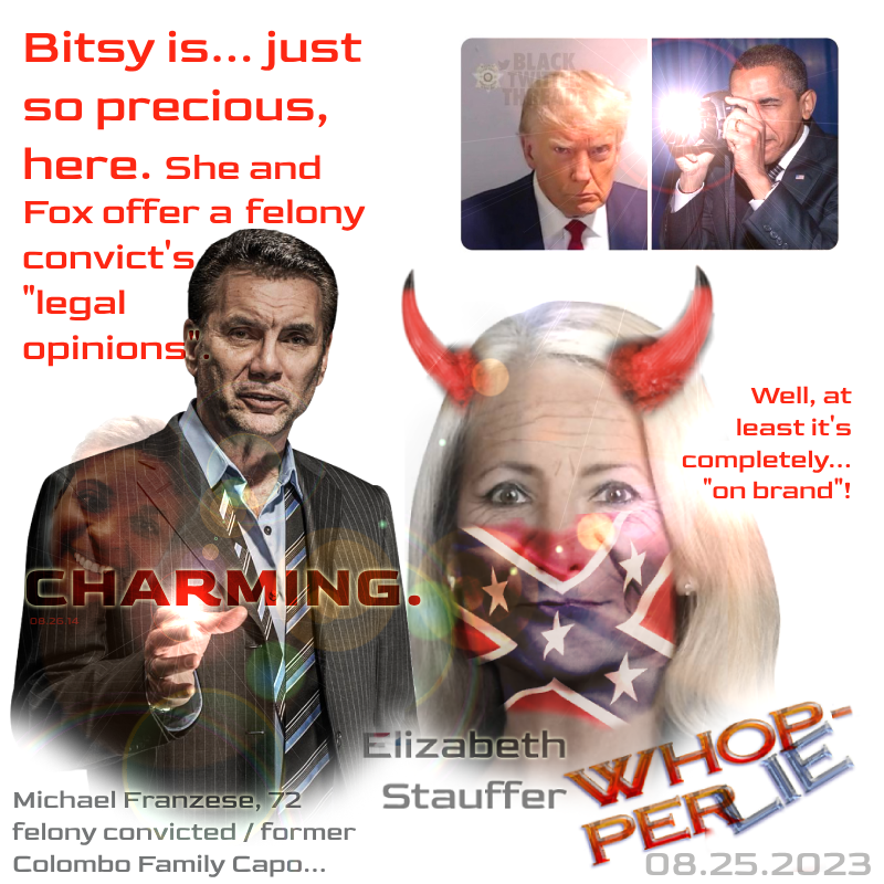 One thought on “Now Fox And Bitsy Are Offering “Legal Opinions” — On Air From A Multi-Felon Convicted Capo, In The Old NYC Mob?!”