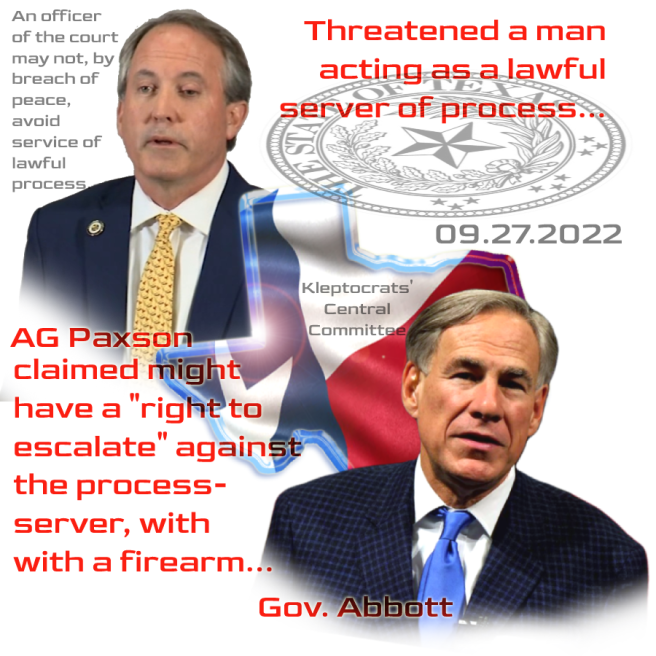 After the order I mentioned earlier today, GOP MAGA AG Ken Paxton issued a statement to threaten abortion providers, under other (likely unconstitutional) laws Texas has passed. It purports to enable a bounty hunter law, to allow private citizens to report on, and go after any abortion provider or anyone who enables the same. [Sheesh. Hellscape meets Stazi indeed.]