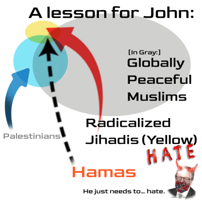 Hinderaker sees this Venn (plainly factual as I’ve drawn it — at right) as a single circle. With all three groups… inside, and coterminus.