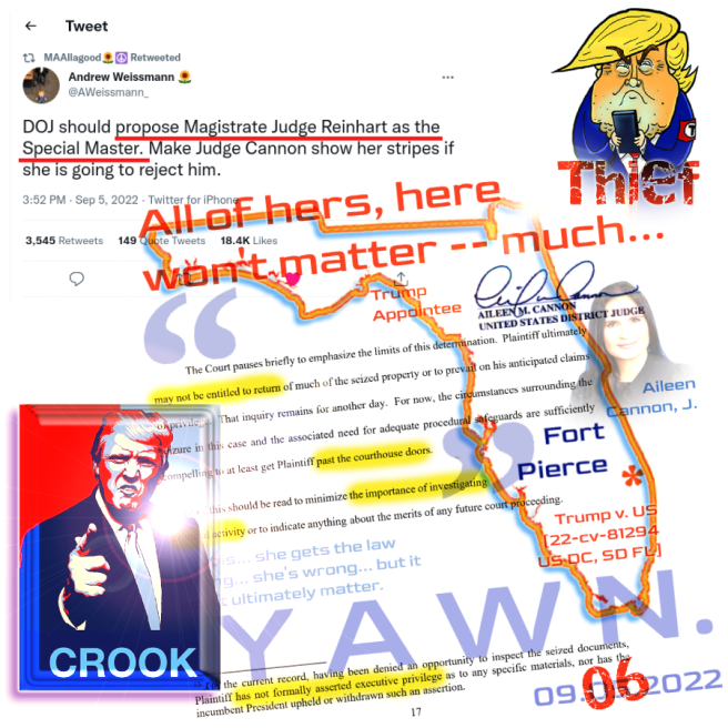 I trust that the substack author is actually talking to various clerks, of Cannon. And it cannot be denied that she’s seemed well out of her depth, on almost all Trump top secret documents / theft related matters.