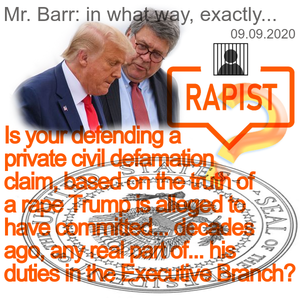 Bill Barr… the lawyer who said Trump could charge the taxpayers to cover his and his spouse’s sexual assault and defamation legal defenses, from acts before he was even a candidate?