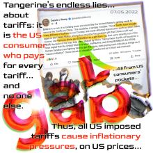 We did talk (in Iteration 1.0, at great length) about what a stupid, discredited, self-defeating 19th Century idea Tangerine’s tariff policies represent. There was a reason he ended them in a matter of months: US consumers saw that they were paying for his tariffs, in higher prices on lots of goods. [B2B noticed too.]