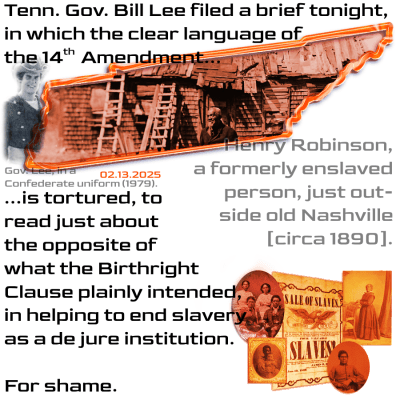 Out in Washington State, the State Government of… Tennessee has officially filed an amicus brief — to oppose the continuation of birthright citizenship. [Tangerine 2.0 has already lost on a preliminary injunction, so Gov. Lee’s brief is filed in the Ninth Cir., as part of the appeals.]