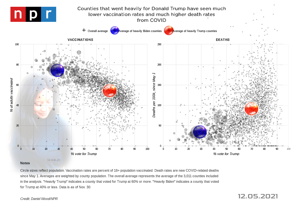 Most of all though, should another pandemic strike, it will be conservative, anti-science whytes who die off — for refusing vaccines, and injecting horse dewormer and… bleach — just as we saw in the 2020-2021 period. [See at right.]