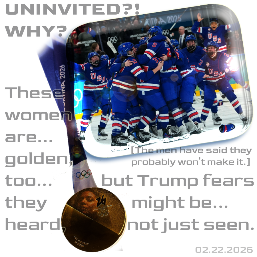 But he said it on a speaker phone being held by one Kash Patel (who was chugging champagne with the boys, at the time), in the USA Hockey locker room in Milano, by then a full day AFTER the women had already won gold. [He hadn’t put in a call to them — by that point.]