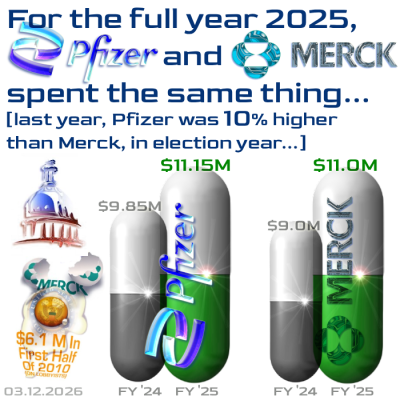 Here is what Pfizer spent on in Q4 — the prior three quarters were detailed here, in more or less real time. Just use the search box, if you are abidingly curious. But I’d call this a spending tie, between Merck and Pfizer (spoiler alert: Amgen blew them both away in 2025 — over $13 million, or by almost 30%). Here is the detail, on Pfizer:
