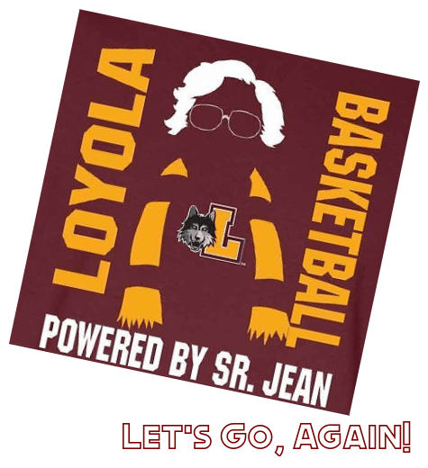 Sister Jean moved from California to teach at Mundelein College in Chicago in 1961. During the mid-1960s, she was active in the civil rights movement. She was hired by Loyola in 1991 when Mundelein was merged into Loyola. She had worked as the team chaplain for the Ramblers men’s basketball team since 1994…. [That graphic at right is from the 2018 Final Four run.] Travel well; travel light Sister Jean… from the NYT, then:
