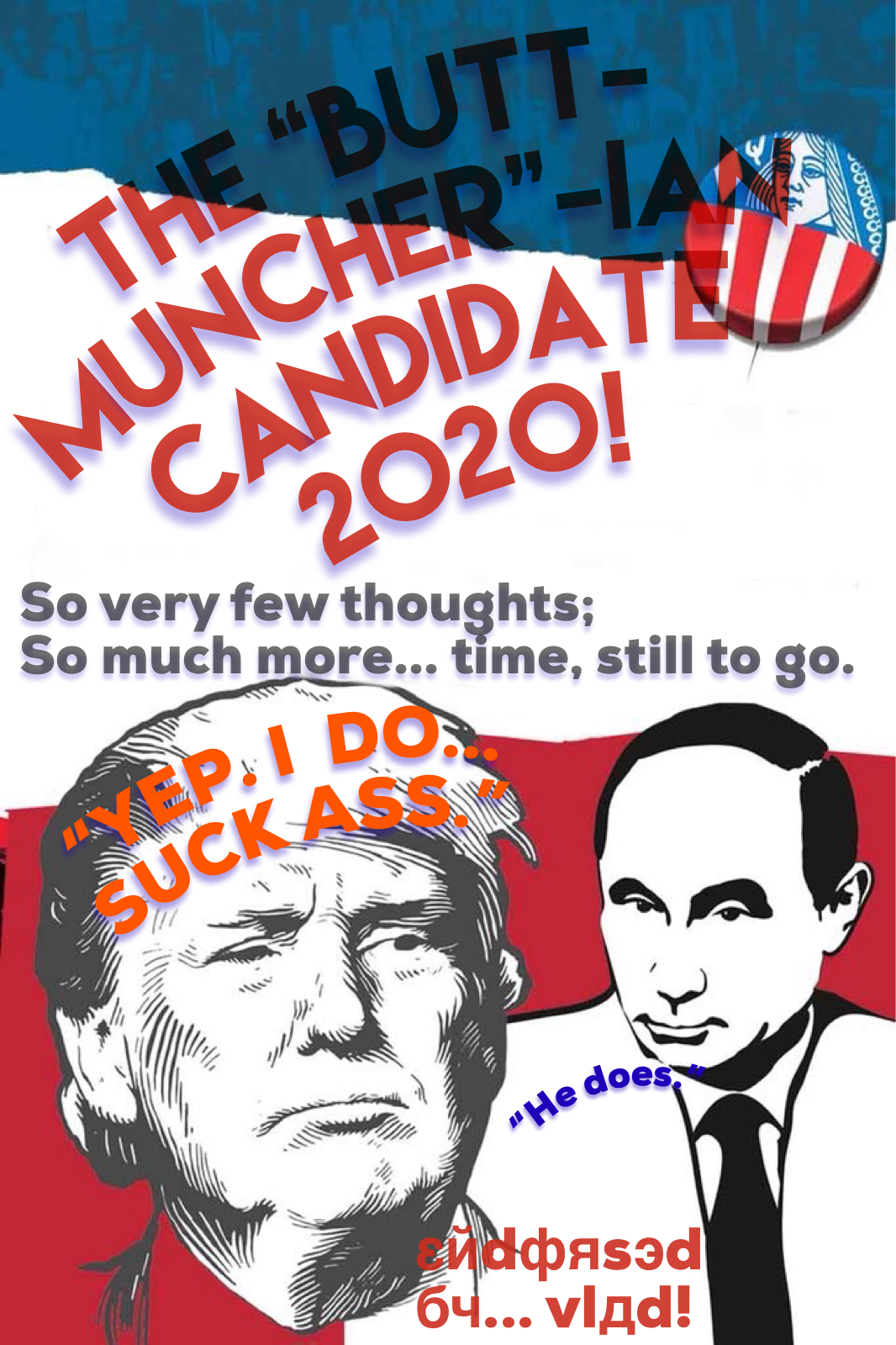 That’s… all very precious (John dodged the draft in the Vietnam era). See what Tangerine himself put out, as an official gab.com statement imaged, at above right. [Now that sanctions exist, Trump cannot borrow at the Russian window.]